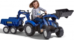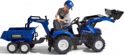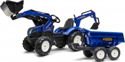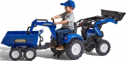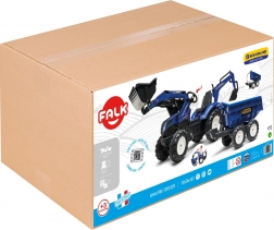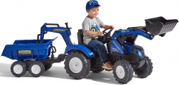 Realistický dětský traktor v originální modré barevnosti New Holland přináší spoustu venkovní zábavy. Děti si užijí hraní s předním nakladačem, který skutečně nabírá, a s odnímatelným přívěsem pro převážení listí, písku nebo hraček. Řetězový pohon na zadní nápravu zajišťuje plynulou jízdu, klakson v volantu dodá hře realističnost a otočné sedadlo se postará o pohodlí.