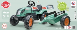 Objevte radost z řízení s šlapacím traktorem FALK LANDER v ikonické zelené barvě. Díky řetězovému pohonu je jízda hladká a zábavná, odnímatelný přívěs zvládne převézt hračky i drobný náklad a klakson v volantu dodá hraní realistické momenty. Robustní plastová kola a stabilní rám zajistí bezpečí při každém dobrodružství.