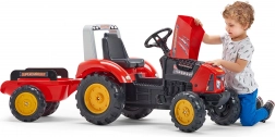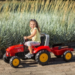 Díky řetězovému pohonu na zadní nápravu a stabilní konstrukci zvládne traktor i hrbolatější povrchy. Odnímatelný přívěs se skvěle hodí na převoz hraček či drobných pokladů ze zahrady. Produkt je určen k částečné montáži, kterou zvládnete během krátké chvíle.