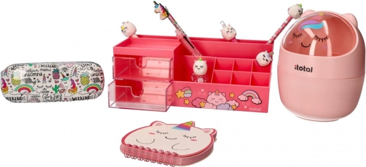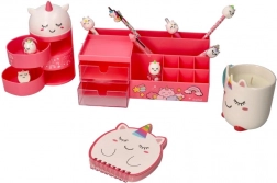 Praktický a roztomilý doplněk do dětského pokoje i kanceláře. Kompaktní organizér pomáhá udržet pořádek na stole a zároveň dodá prostoru veselý design s motivem jednorožce.