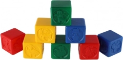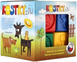 Každá kostka je reliéfovaná zvířecími motivy, které pomáhají rozvíjet hmatové a vizuální dovednosti dítěte.