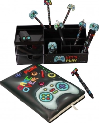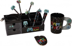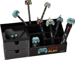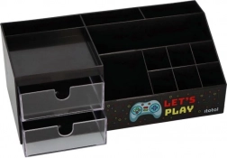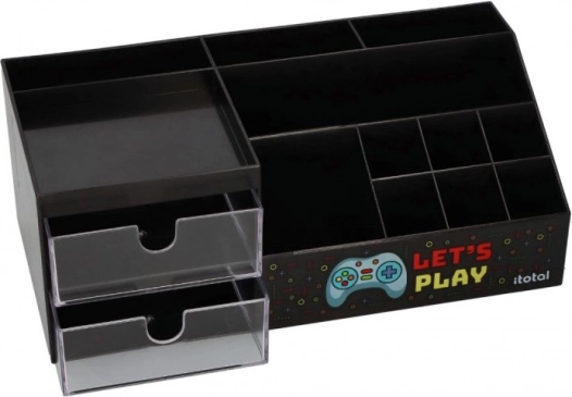 Udržte svůj stůl dokonale přehledný s tímto stylovým organizérem v černé barvě s motivem LET’S PLAY. Kombinuje dva průhledné šuplíky a více přihrádek pro tužky, kabely, drobná příslušenství nebo herní gadgety. Odolné plastové provedení a hravý gamingový design skvěle zapadne do pracovny, studentského pokoje i herního koutku.