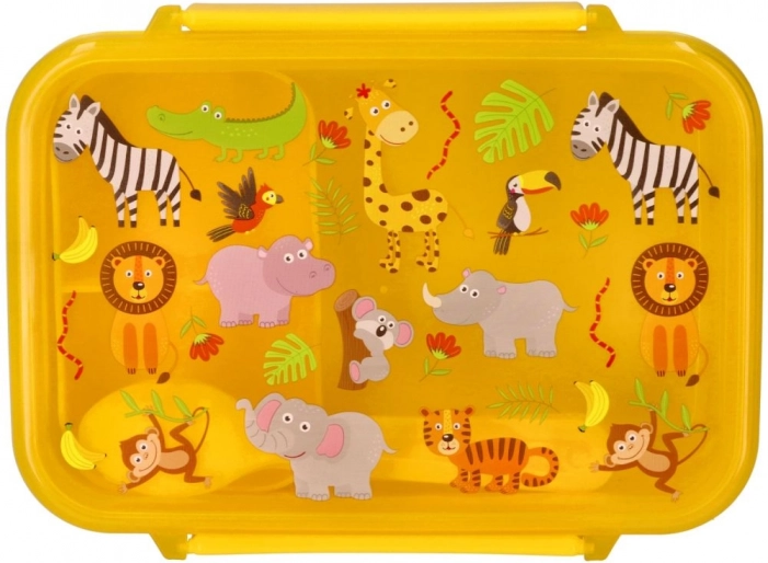 Veselý žlutý lunch box s obrázky lva, zebry, žirafy a opičky zpříjemní každé dětské svačení. Kompaktní rozměry 18 × 13 × 6 cm se snadno vejdou do školní tašky, přitom nabídnou dostatek místa na sendvič, ovoce i drobné pochutiny. Díky kvalitnímu materiálu bez BPA je box bezpečný pro každodenní používání.