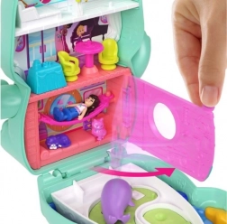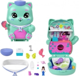 Objevte kouzlo mořských dobrodružství s touto úžasnou sadou od Polly Pocket! Sada má tvar roztomilé kočky, kterou lze ozdobit doplňky. Po otevření se promění v několikapatrovou výletní loď s kafeterií, houpacím hamakem a kormidlem.