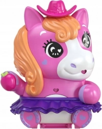 Otevřete roztomilý kompaktní set ve tvaru poníka – uvnitř se objeví miniaturní rodeo se stájí, tanečním parketem a prostorným výběhem. Děti mohou zdobit vnější stranu módními doplňky, posadit postavičky na atrakci, která se pohybuje nahoru a dolů, a vytvářet vlastní koňské příběhy.