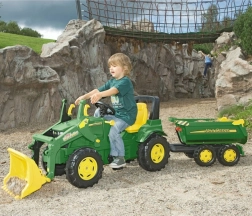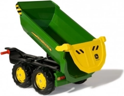 Dětský přívěs JOHN DEERE od ROLLY TOYS halfpipe je navržen pro realistickou hru na farmu. Díky dvojité nápravě je mimořádně stabilní, má velkou korbu pro převážení materiálu a otevírací zadní čelo pro snadné vysypání nákladu. Odolný plast a ikonické barvy JOHN DEERE zaručují dlouhou životnost a atraktivní vzhled.