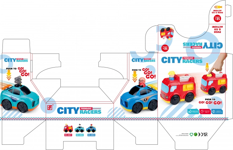 - Zábavný mechanismus: Pohyb auta se aktivuje jednoduše zatlačením figurky do sedadla řidiče.