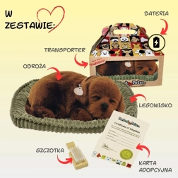 Hebký čokoládový labrador působí mimořádně realisticky – uzavřené oči, měkký kožíšek, obojek se štítkem a pohodlný pelíšek vytvářejí dojem skutečného spícího štěněte. Hračka podporuje klidnou atmosféru doma i v dětském pokoji a potěší malé i velké milovníky psů.