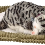 Hledáte milého parťáka do dětského pokoje nebo útulnou dekoraci do interiéru? Toto dýchající plyšové kotě – šedý mourek působí neuvěřitelně realisticky, jemně „oddychuje“ a navozuje pocit klidu a pohody. Díky měkkému plyši a věrnému mourovatému vzoru vypadá jako skutečná spící kočka.