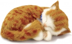 Tato dýchající plyšová kočička v provedení zrzavé pruhované miciny působí výjimečně realisticky – má měkoučkou srst, roztomilý obojek a klidně odpočívá v hebkém pelíšku. Jemný pohyb napodobující dech přináší pocit klidu a bezpečí, takže je ideální jako útěšný společník pro děti i dospělé.