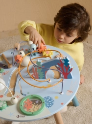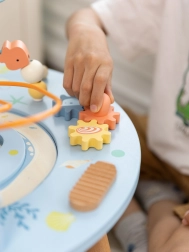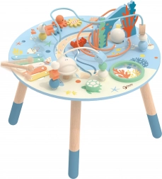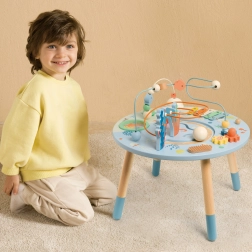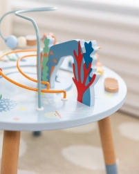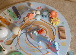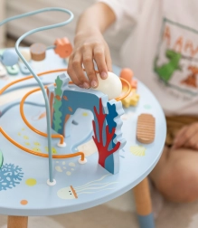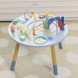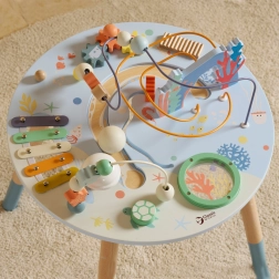 Dřevěný stolek aktivit Mořský Život je skvělým úvodem do světa tvarů a barev. Bezpečný pro nejmenší, vyrobený z kvalitního dřeva a malovaný nezávadnými barvami. Děti jsou povzbuzeny ke hře vstoje, což podporuje jejich koordinaci a rovnováhu. Vzdělávací přínosy tohoto stolku jsou nezměrné, ať už jde o zlepšení jemné motoriky nebo rozvoj hudebních dovedností.
