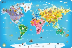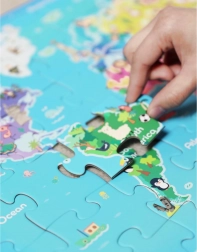 Díky těmto pestrobarevným puzzlům se děti naučí rozpoznávat kontinenty a oceány zábavnou formou.