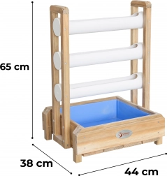 Dřevěná vodní hra CLASSIC WORLD je skvělým doplňkem pro venkovní hry. Díky jednoduchému principu proudění vody děti zábavnou formou objevují přírodní jevy a rozvíjejí své dovednosti. Robustní provedení a bezpečné, netoxické nátěry zajišťují dlouhou životnost i bezpečné používání.