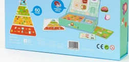 Tato vzdělávací hračka pomáhá dětem pochopit, jaké potraviny patří do každodenní stravy. Na magnetické desce si mohou skládat a třídit uhlohydráty, bílkoviny, zeleninu, ovoce i sladkosti a vytvářet vyvážená jídla hravou formou. Díky bohaté sadě dílků a přehlednému uspořádání se učení mění v zábavu.
