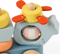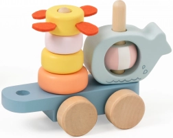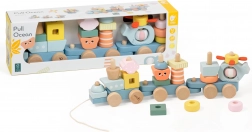 Vláček podporuje jemnou motoriku, prostorovou představivost a tvořivost. Tři propojitelná „auta“ unesou různé stavební dílky, které děti libovolně kombinují. Šňůrka na tahání motivuje k pohybu a promění každý pokoj v dobrodružnou oceánskou plavbu.