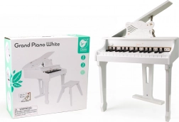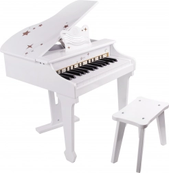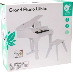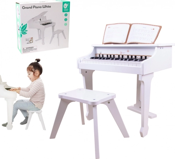 Dětské bílé pianino CLASSIC WORLD nabízí autentický zážitek ze hry na skutečný nástroj v bezpečné a hravé podobě. Díky dřevěné konstrukci, stabilní stoličce a notové opěrce si malí hudebníci užijí pohodlné sezení i správné návyky při hraní. Součástí balení je ilustrovaná knížka s notami, která usnadní první melodie.