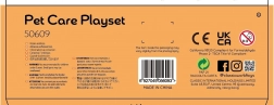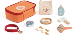 Obsah balení (15 dílů): přenosná taška, obojek, kost, miska, konzerva s krmivem, sáček s krmivem, šampon pro mazlíčky, kartáč na srst, fén, nůžky a další drobná příslušenství.