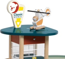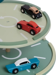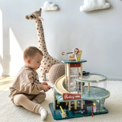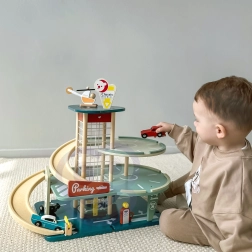 Stylové dřevěné parkoviště ve vintage stylu od značky CLASSIC WORLD přenáší děti do zlaté éry automobilů. Nabízí 3 úrovně s funkční výtahem, myčku, čerpací stanici, přistávací plochu pro helikoptéru a bioplastové rampy. Hra rozvíjí jemnou motoriku, jazykové dovednosti i společenské schopnosti. Dřevo má certifikaci FSC.