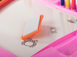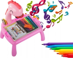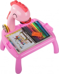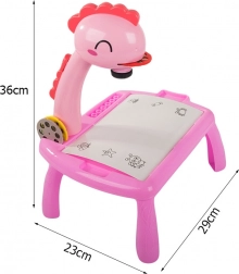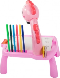 Rozvíjejte dětskou kreativitu s tímto růžovým kreslicím stolem s projektorem a melodiemi. Díky promítání šablon děti snadno obkreslí obrázky, trénují jemnou motoriku a představivost. Sada obsahuje 3 výměnné disky (24 motivů), 12 fixů a stíratelnou plochu pro opakované používání.