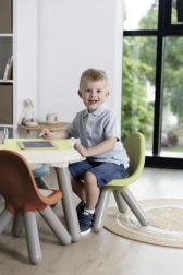Vyrobeno z min. 90 % recyklovaného materiálu, což podporuje šetrný přístup k přírodě. Rozměry 33 × 33 × 50 cm jsou ideální pro předškolní děti a univerzální využití při hraní, tvoření i stolování.