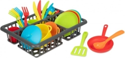 Hravá kuchyňská sada pro malé kuchaře obsahuje 27 dílů – hrnec, pánev, talíře, šálky, příbory a další pomůcky. Podporuje kreativitu, jemnou motoriku i sociální dovednosti při hře na vaření a servírování. Praktické balení v blistru udržuje vše přehledně pohromadě. Vhodné pro děti od 2 let.