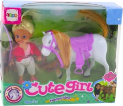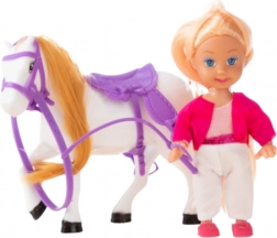 Roztomilá jezdecká sada s mini panenkou a bílým koníkem přináší hodiny kreativní zábavy. Panenka vysoká 12 cm v jezdeckém oblečku je připravena na vyjížďku. Koník s dlouhou hřívou a ocasem je vybaven fialovým sedlem a uzdou pro ještě realističtější hraní. Díky pohyblivým prvkům může panenka pohodlně sedět v sedle a děti mohou rozvíjet fantazii, jemnou motoriku a empatii při péči o zvířátko.