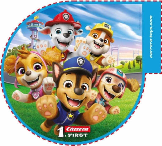 Dětská autodráha CARRERA FIRST Tlapková patrola 2,4 m. Dvě autíčka, vrtule, snadné sestavení, až 6 h jízdy na baterie. Vhodné od 3 let.