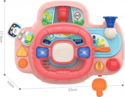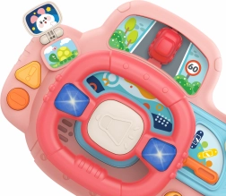 Elektronický volant WOOPIE je plný aktivit a zábavy. Je vybaven tlačítky, světly a zvuky pro simulaci realistického zážitku z jízdy, což angažuje a podporuje dětskou představivost. Otáčením volantu se autíčko pohybuje, což přináší další potěšení vašemu dítěti. Volant s panelem nabízí 11 funkcionalit, které zajišťují hodinovou zábavu. Navíc lze produkt nainstalovat pomocí pásků k postýlce, autosedačce a na mnoha jiných místech.