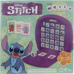 Objevte zábavnou rodinnou hru Match s postavičkami ze světa Disney STITCH. Střídejte se v otáčení a výměně dílků a snažte se jako první vytvořit 5 stejných obrázků v řadě. Ideální pro 2 hráče, podporuje logické myšlení, postřeh a komunikaci. Doporučeno od 4 let.