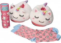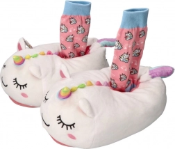 Design s jednorožcem a doplňkovými ponožkami v dárkovém stylu potěší jako milý dárek i praktický domácí doplněk.