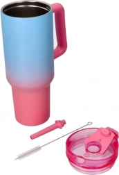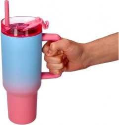 Objevte komfort velkého termohrnku se slámkou, který kombinuje velký objem 1200 ml s lehkým a praktickým provedením. Díky víčku s brčkem pijete pohodlně i na cestách, zatímco pohodlné ucho usnadňuje přenášení. Trendový modro‑růžový ombré design dodá šmrnc každému dni.