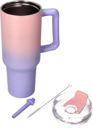 Objevte komfort velkokapacitního termo hrnku, který kombinuje moderní vzhled s praktickými detaily. Pastelový přechod růžové do fialové zaujme na první pohled, průhledné víčko s otvorem pro slámku a pohodlné ucho zase usnadní každodenní používání doma i na cestách.