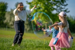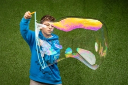 Nástavec String a kvalitní roztok umožní tvořit opravdu velké, stabilní bubliny s výrazným duhovým efektem – ideální pro zahradní show.