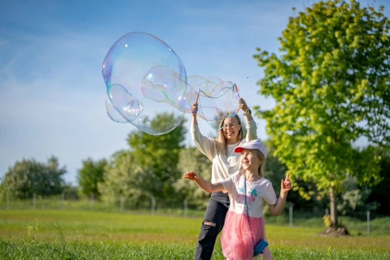 Lehké nástavce a pohodlná manipulace zaručují rychlou a bezpečnou zábavu. Stačí namočit a mávnout – bubliny se jen pohrnou.