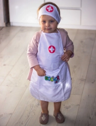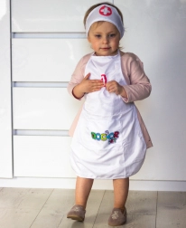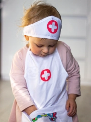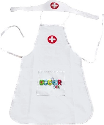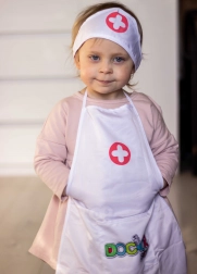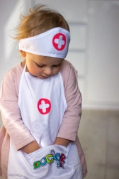 Lehká zástěra s praktickými kapsami pojme stetoskop i další dětské pomůcky, aby byla hra na doktora vždy po ruce.