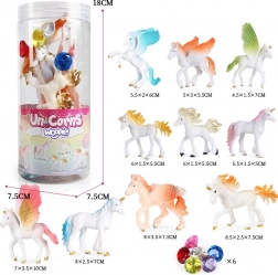 Tato okouzlující sada figurek jednorožců od značky WOOPIE přináší dětem hodiny zábavy a fantazie. Figurky v různých pózách, s pestrobarevnými hřívami, ocasy a křídly, lákají k vytváření vlastních příběhů, zatímco „drahokamy“ dodají hraní jiskru. Díky kvalitnímu provedení jsou ideální jak na samostatnou hru, tak jako doplněk do dětského pokojíčku.
