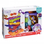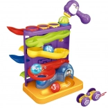 Díky tematickým kuličkám lze hravou formou procvičovat počítání i abecedu. Děti si zlepší koordinaci, sílu úchopu a pochopení příčiny a následku – kulička nebo autíčko vyjede shora a sjede až dolů po vlnitých drahách.