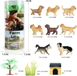 - 8 figurek psů, strom, 6 rostlin, psí bouda