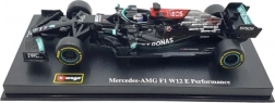 Užijte si precizně zpracovaný model monopostu Mercedes-AMG F1 W12 E Performance 2021 od značky Bburago v oblíbeném měřítku 1:43. Model věrně zachycuje závodní specifikaci vozu s číslem 77, který v sezóně 2021 pilotoval Valtteri Bottas, včetně autentických barev, log a detailů karoserie.