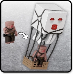 Prožijte filmové dobrodružství Minecraft naživo. Interaktivní Ghast je vybaven tlačítkem na horní straně, které aktivuje světla, zvukové efekty a vypálí oranžový projektil z úst. Díky řetězům a podvěsné „kleci“ můžete snadno napodobit scény, kdy Piglini využívají Ghasty k útoku.