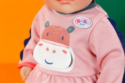 Dopřejte své panence stylový outfit, který zaujme na první pohled. Šatičky v jemných barvách s roztomilým hrošíkem a pohodlné pruhované legíny jsou ideální pro každodenní hraní i speciální příběhy. Díky kvalitním textiliím obleček dobře drží tvar a snadno se obléká.
