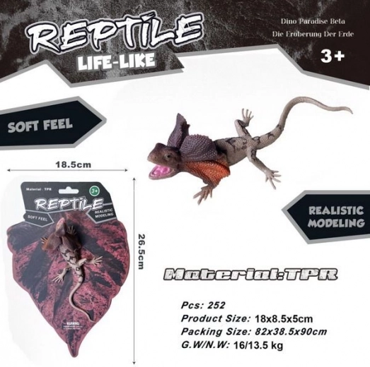 Realistická gumová ještěrka inspirovaná agamu límcovou potěší děti i sběratele. Nabízí měkký a ohebný materiál, věrné detaily a praktickou velikost 18 cm pro hraní i dekoraci.