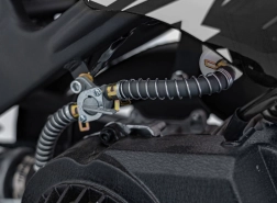 Kotoučové brzdy na obou kolech, přední teleskop a zadní tlumič zajišťují kontrolu, komfort a stabilitu na nerovném povrchu.