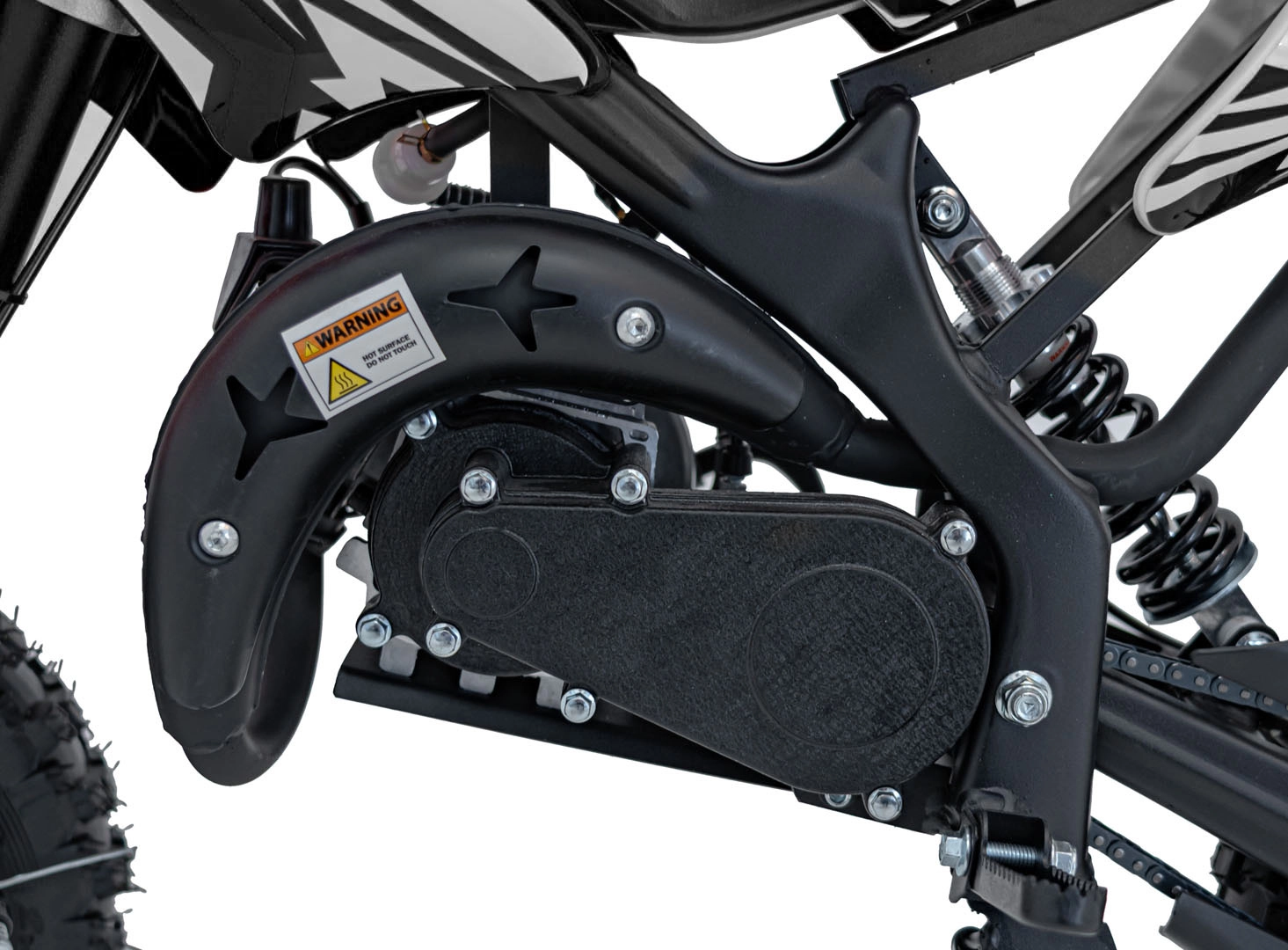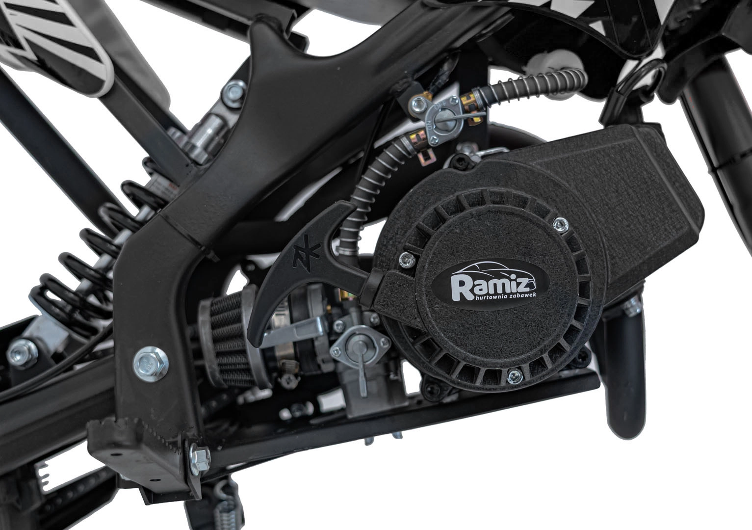 Dvoutaktní jednoválec se vzduchovým chlazením a ručním startérem nabízí spolehlivý výkon a snadnou údržbu – ideální pro mladé jezdce.