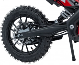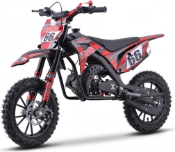Minicross motorka TIGER s objemem 49 ccm je skvělou volbou pro první off-road zážitky. Robustní rám lakovaný práškovou barvou, zpevněná zadní kyvná vidlice a kvalitní pružné plasty jsou zárukou odolnosti. Vzduchem chlazený dvoutaktní jednoválec se startuje ručně a přes řetězový převod přenáší sílu na zadní kolo.