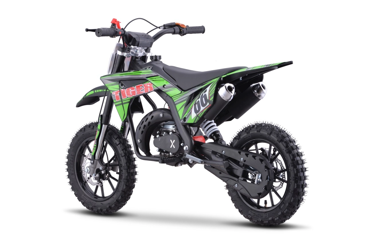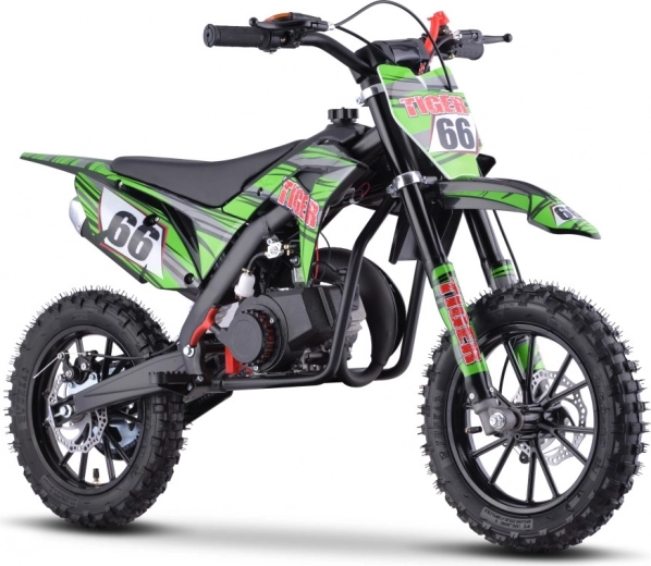 Dětská terénní motorka Tiger 49cc je perfektní volbou pro malé dobrodruhy toužící po vzrušujících jízdách. Díky tvrdé kovové konstrukci a silným plastovým částem je motorka nejen odolná, ale také bezpečná při každodenním používání.