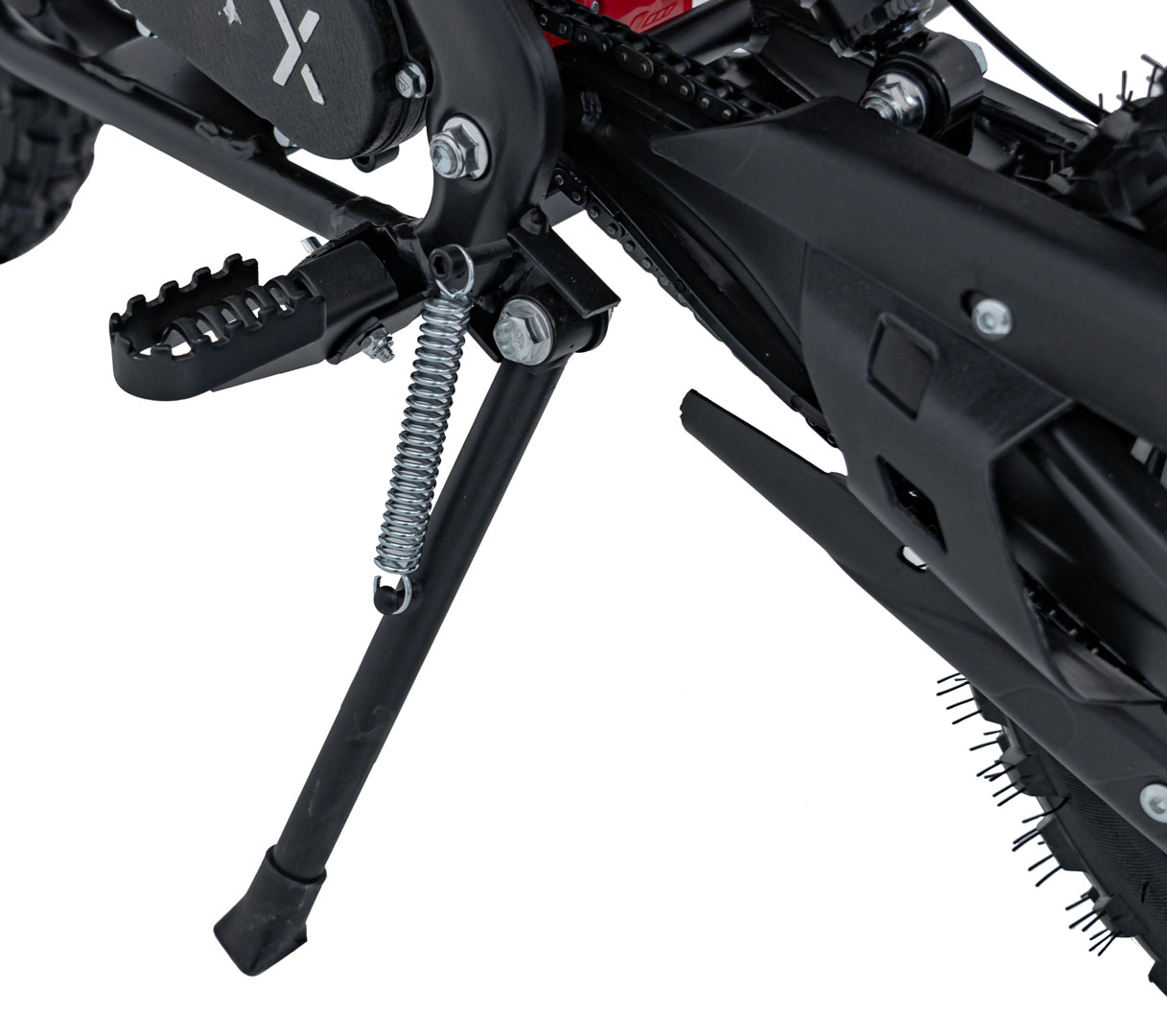 Silný a práškově lakovaný rám, spolu se zesíleným zadním ramenem, zajišťuje dlouhou životnost motorky.