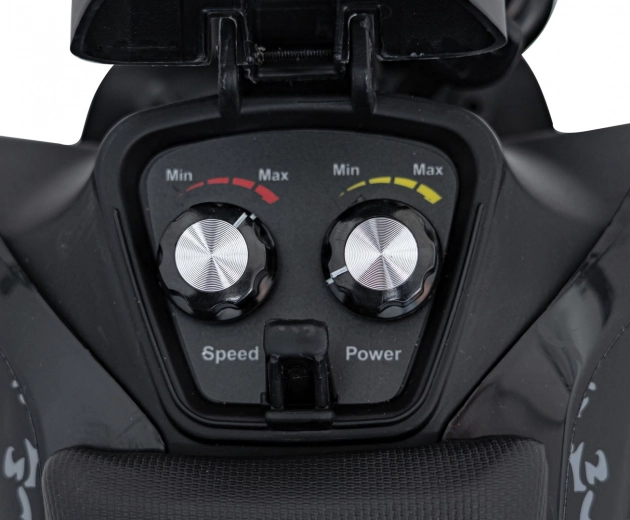 Pro jistotu v náročném terénu slouží hydraulické teleskopické vidlice vpředu a zadní stavitelný tlumič, zatímco kotoučové brzdy na obou kolech zajistí silný a plynulý brzdný účinek. Široké nafukovací pneu s hlubokým dezénem přinášejí výbornou trakci na hlíně, štěrku i trávě. Nechybí regulace rychlosti a točivého momentu na klíček pro vyšší bezpečnost mladších jezdců.