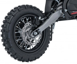 Hluboký vzorek nafukovacích pneumatik (přední 2,75-12, zadní 3-10) poskytuje skvělý záběr na hlíně i štěrku. Řetězový pohon je spolehlivý a nenáročný na údržbu. Maximální nosnost 90 kg a světlá výška 29 cm dávají jezdci prostor pro skutečné off‑road zážitky.