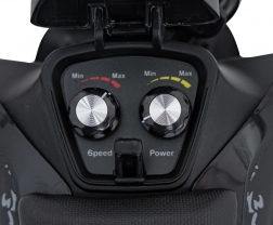 Ukazatel nabití baterie, regulace rychlosti i momentu na klíček a voděodolné měkké sedlo pro dlouhé a pohodlné jízdy.